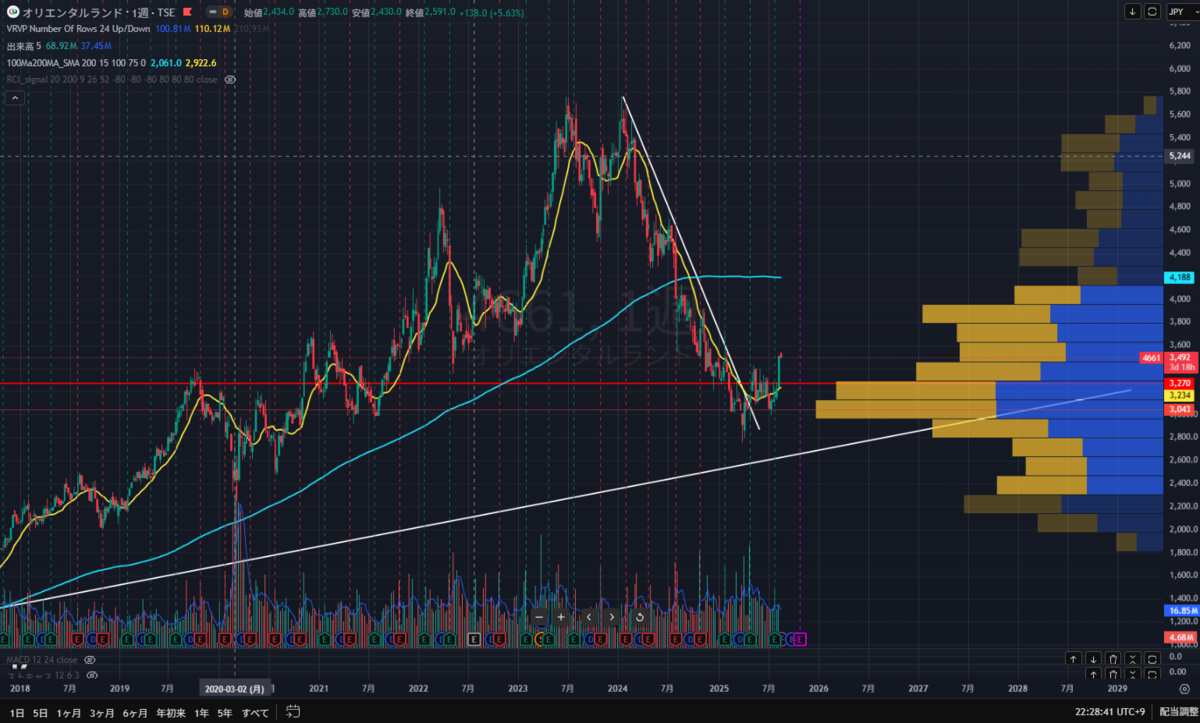 オリエンタルランドは割高を受け入れて成長に賭ける銘柄。猛暑や万博の一時的ノイズはあるものの、中長期では需要・価格戦略・ホテル収益の三拍子に期待。短期の値動きはブレても、理由が崩れない限りはホールドでいきます。